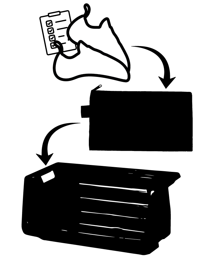 - Fill out an order form. Forms are located at the dropbox.